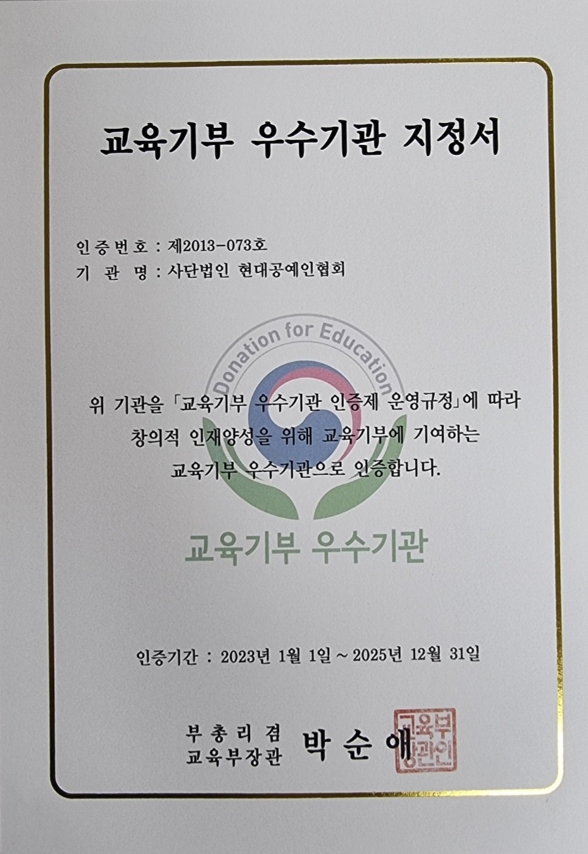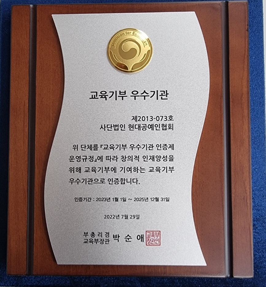 2022년 현대공예인협회 교육기부 우숙기관 선정!
